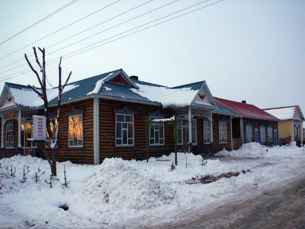 俄罗斯族的住房多为土木结构的平房。房屋十分高大,墙体厚实,可以起到很好的防风保暖,抵御寒冷的作用,夏季房间内温度凉爽,是真正的冬暖夏凉的居民建筑。木刻楞房是俄罗斯族最为典型的民居住房。