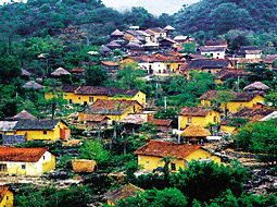 白裤瑶主要聚居在广西南丹的大石山区,因男子穿白裤而得名。村寨都在山腰坡底,小寨十多家,大寨上百户。寨内古树参天,民居依山而建,没有固定朝向,后墙借助山坡,前墙与两山墙起1.5米高的石墙,屋顶盖青瓦,框架以排架柱头式居多,也有简单柱头式。正面一门、两门、三门都有,以石阶上下,主要是考虑儿子结婚分家时不用另建新房,随时隔间,各走各的门。室内布置大都以竹篾编片,少数用木板隔成卧室,火塘、锅灶、石磨都在各自的区域。