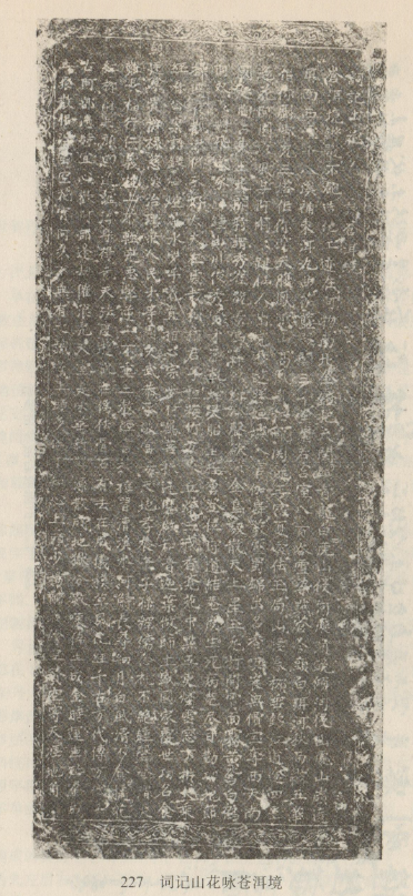 白文碑刻。明杨黼作。景泰元年(1450年)立,原嵌于大理县作邑乡庆洞庄圣元寺偏殿前厅北壁,后移至大理县文化馆。碑文14行,阴文正体,从右到左直行书写。首行为题,其余正文,共13行,每行40字,只第9行41字,末行39字。全诗20节,每两节为一联,共10联。前4联咏苍山洱海的自然景色和地势名胜,后6联抒作者之情感。以白语吟诵,优美动听。这是目前保存最为完好的一块白文碑。傅懋勣、肖雷南在40年代曾根据郭纯仁的读音注解此碑,有油印本。石钟健、杨灿然、徐嘉瑞亦对此碑加以研究。1957年,徐琳、赵衍荪以郭纯仁读音为本,用国际音标记音,并加翻译。《民族语文》1 980年第3期载有释读文章。