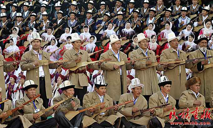 库姆孜弹唱展演,由图可见库姆孜在柯尔克孜族中的普及程度(约提克尔·尼加提 摄影)