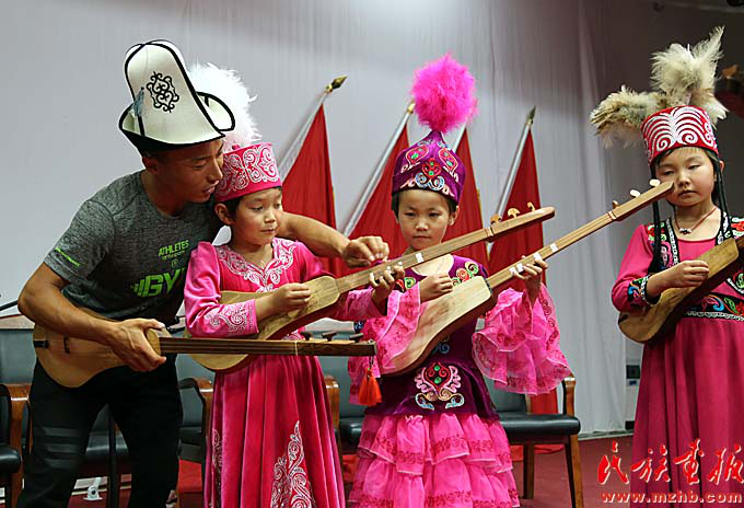 沙力哈尔别克·玉山巴依利用暑假教孩子们弹库姆孜