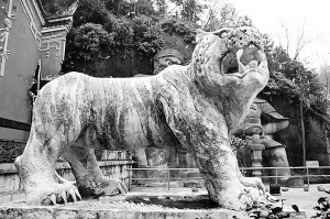湖北恩施土司城九进堂前的白虎。 资料图片