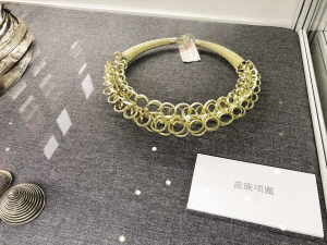 展出的苗族对襟绣花百鸟衣。图片摄影:高莹