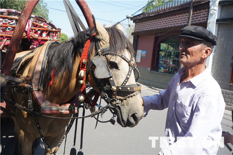 走在古巷中,你会听到驾驶“哈迪克”(马车)的维吾尔族老人的吆喝声。招招手打个“马的”,在嗒嗒的马蹄声和叮咚悦耳的马铃声中,穿梭在一条条曲径通幽的小路间,一路前往独具特色的庭院和百年民居。每一条街道风情各异,每一条小巷曲折有致,仿佛走进了一座建筑博物馆。图为驾驶“哈迪克”的老人。