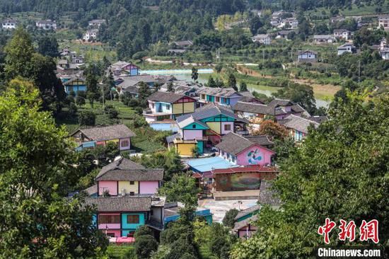 航拍贵州湄潭金花村“七彩部落”。 瞿宏伦 摄