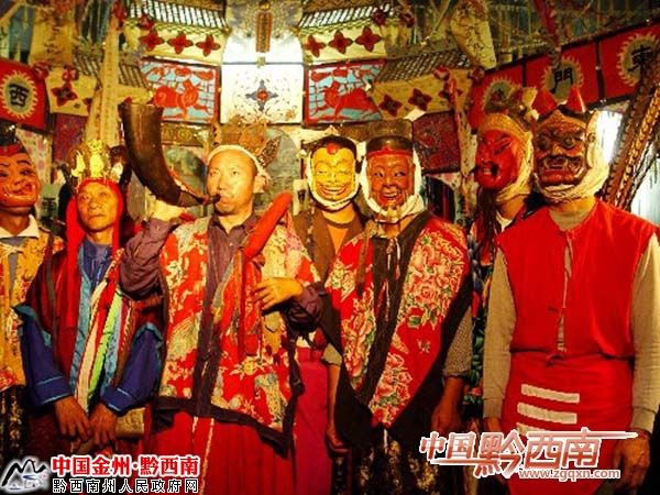 生活在黔西南州贞丰、晴隆、普安、望漠、册亨、安龙、兴义等8县市的20万苗族同胞的先民,在远古时代“信鬼不信神”,认为人的灵魂不灭,祖先死后灵魂仍在,可以保佑子孙后代。因此,苗族先民往往祈求祖先,助其实现心愿,一但酬愿便要祭祀祖先,俗称“还傩愿”。还愿时举行的仪式就是傩仪。还傩愿主要由苗巫师主持,跳傩时配以唱、念及动作,仪式非常庄严肃穆。明末清初民间艺人开始将“还傩愿”的部分内容整理、加工、完善后搬上舞台,便成了傩戏。因此说,傩戏是从庄严的祭祖仪式脱胎而成的一种独具特色的地方曲目。傩戏没有管弦乐,但有节奏明快的锣鼓伴奏,曲调流畅悦耳,剧情风趣诙谐,更具有浓郁神秘的苗族文化色彩,深受苗族同胞的喜爱。