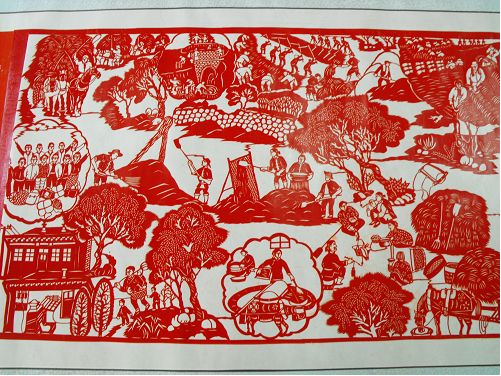3、达拉特纪事剪纸的艺术价值很高,可以与中国传统字画媲美。在技艺上,剪纸上的人和事物,构图栩栩如生,细腻传神,与其他剪纸艺术相比较,从制作工艺和内容上显示出其独特的创造性,体现了民间剪纸艺人较高的审美情趣和美学追求,具有极高的收藏价值。