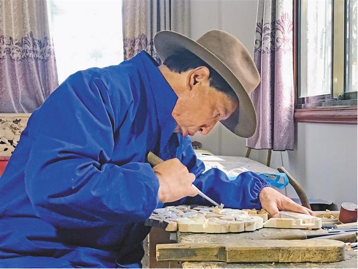 37年来,拉巴次仁在实战中不断提高、积累了一整套描摹、勾勒、细雕、上色等完整流畅的技艺方法。如今,他一人可以雕刻出藏式建筑木头构件、柱头、横梁、托木,门窗、藏柜、浮雕、镂空、立体雕刻等80多种样式。