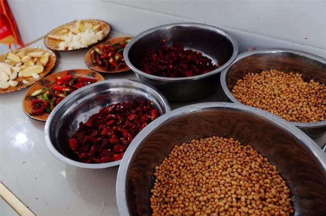 黄豆、干辣椒、小辣椒、蒜、姜,