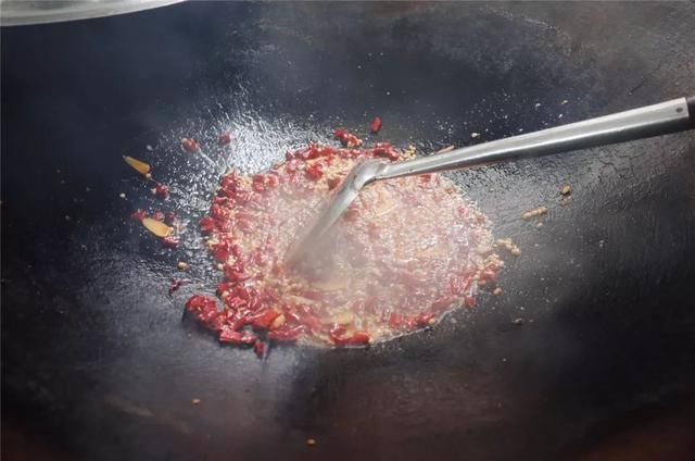立即将剁成小块的鸡肉放入锅中不停翻炒。
