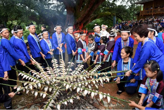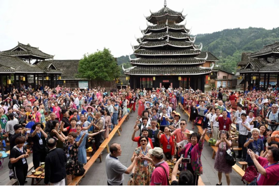 过年期间,各家各户姓氏轮流过节,亲朋好友都会集中前往,最后到鼓楼坪唱歌跳舞庆祝侗年。——程阳八寨景区