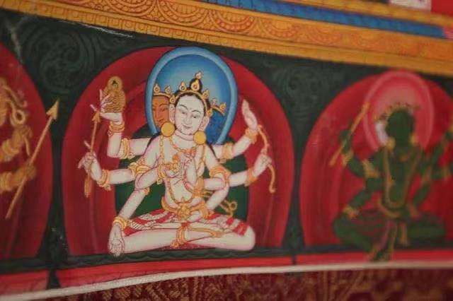 900多年前流传于卫藏地区(现山南)的齐乌岗派唐卡,由雅堆·齐乌岗巴创立,与嘎玛嘎赤画派、勉塘画派、钦孜画派、埃赤画派并称“唐卡五大画派”。齐乌岗派特点为人物体形饱满、生动细腻,色彩以枣红、橘红暖色系为主;中央的主尊突出,背景多用卷草纹作为装饰。特别是,齐乌岗派唐卡的佛像肩膀旁都有象征翅膀的“三角”,源于创始人齐乌岗巴行动灵敏,亦被称作“齐乌派”。