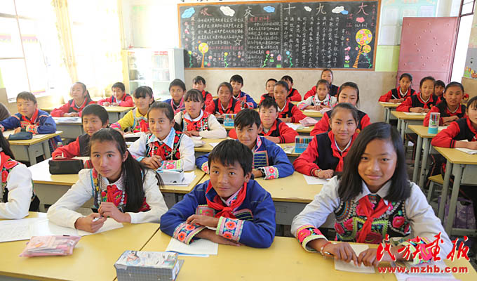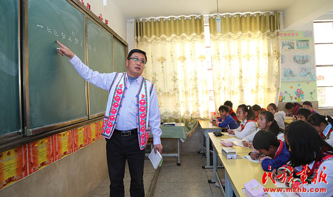 走进干净整洁的教学楼,阵阵读书声渐渐清晰,原来是六年级的学生正在上彝语课。看着认真授课的彝族老师,校长杞万开说:“建设德高业精的双语教师团队是我们做好双语教育的根本保证,因此我们每年都选派优秀教师参加云南省的双语教师培训,提升教师‘彝语为辅,汉语普通话为主’的双语教育能力。”