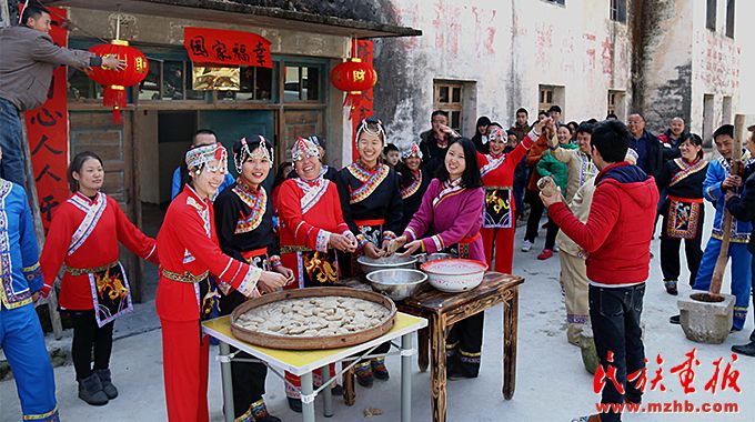 乐安县金竹畲族乡的畲族群众准备了特色小吃,欢欢喜喜迎新年。