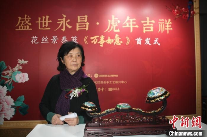 中国工艺美术大师程淑美介绍花丝景泰蓝贺岁作品《万事如意》 李妮 摄