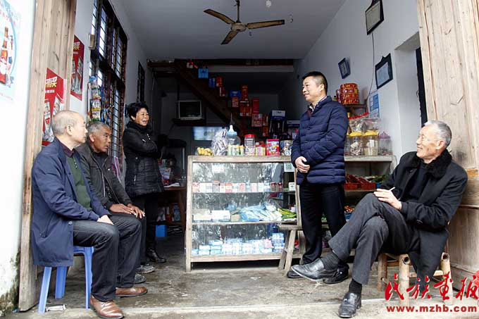 钟声亮经常和村民聊天了解他们的实际困难(康梦婷 摄影)