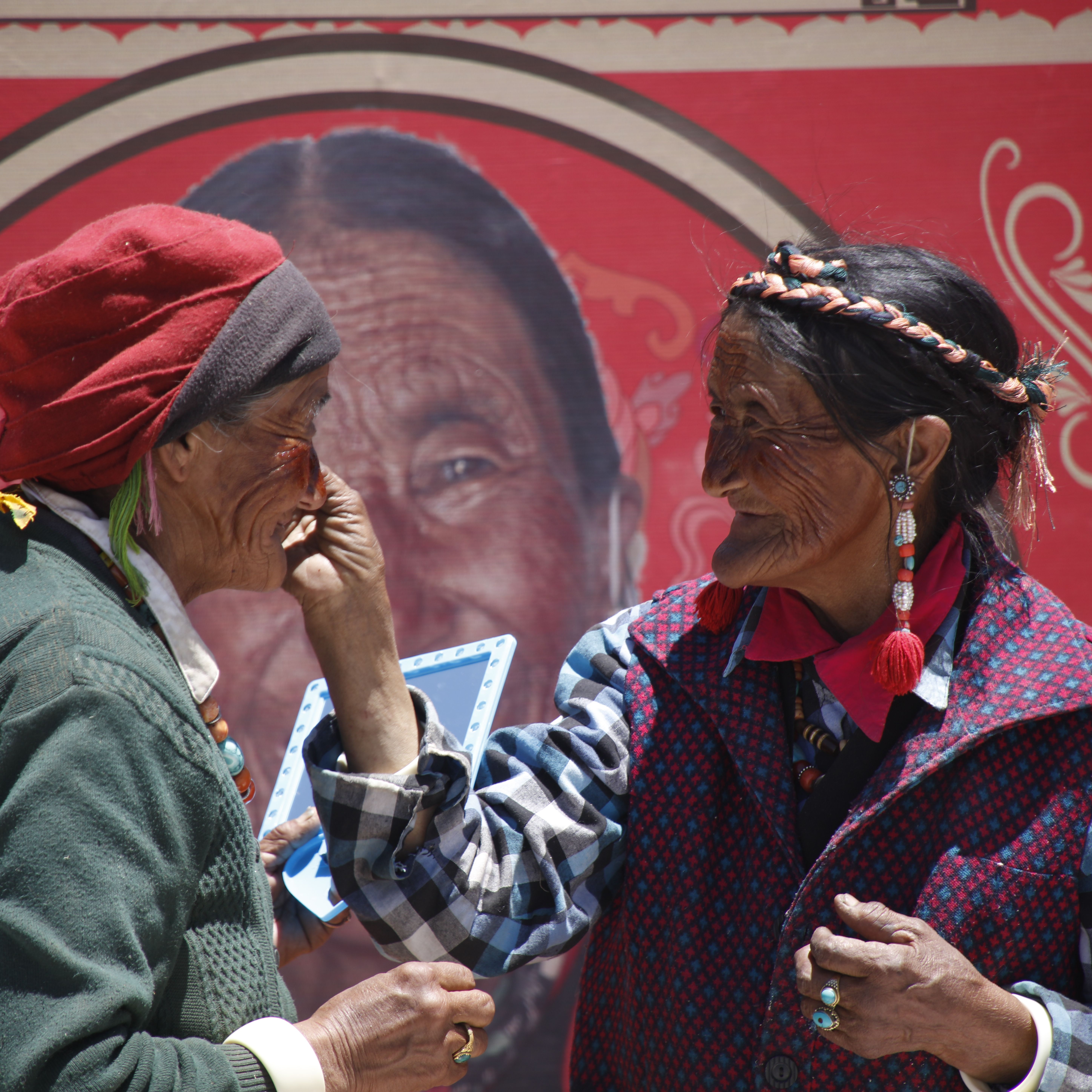 用札达面膜防晒的老奶奶们